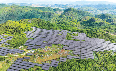 近年来,贵州省黔西市五里布依族苗乡坚持绿色发展理念,大力推进生态清洁能源项目,流转荒山、荒坡发展光伏产业,让荒山变成“金山银山”,为乡村振兴和经济社会高质量发展赋能,助力乡村绿色发展。图为黔西市五里布依族苗乡石门村的光伏电站与青山相映成画。