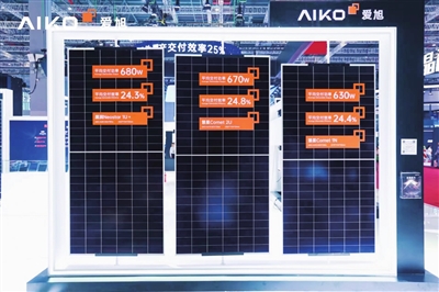 正是基于对技术领先的追求,在本届SNEC上,爱旭股份推出了最新ABC组件产品“满屏”。该组件产品最高功率达700W,量产转换效率突破25%。在陈刚看来,“满屏”的“满”是对其价值的肯定,但这并不代表爱旭股份就满足于此。“满”更是对于未来技术产品进一步突破的希冀。