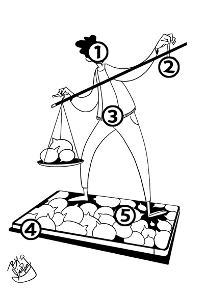 (左边两幅漫画共有5处不同,快来找找看吧!)画/刘鹏