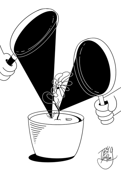 (左边两幅漫画共有5处不同,快来找找看吧!)画/刘鹏