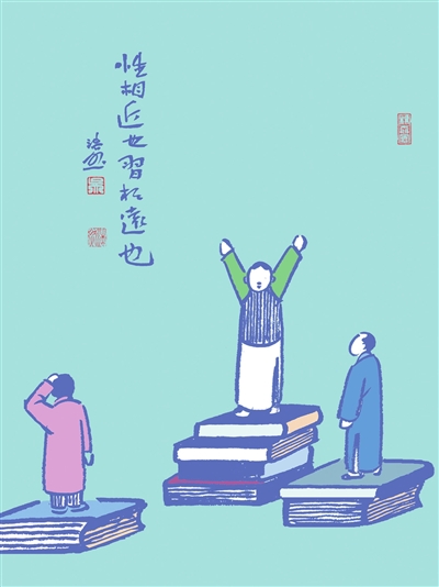 【画意】人初生其实就是一张白纸,长大以后会随着成长环境、生活阅历以及知识积累的不同而慢慢书写出不同的内容。譬如,读书多的人,知识面广,境界就会与众不同。