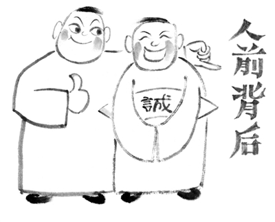 当面夸人是朵花,背后说人豆腐渣。急功近利目光浅,两面三刀井底蛙。