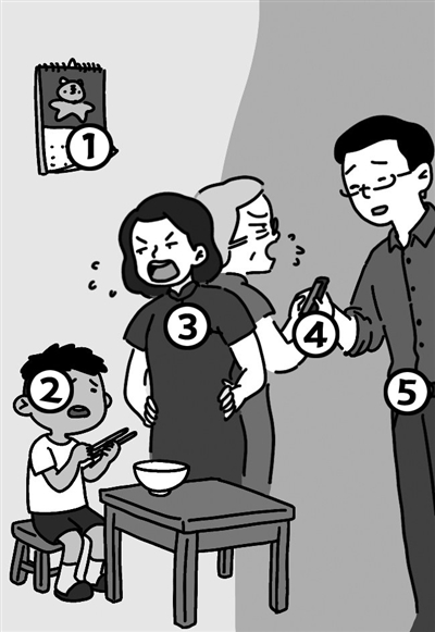 (上边两幅漫画共有5处不同,快来找找看吧!)