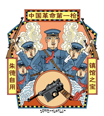 朱德用这把手枪,与周恩来、贺龙、叶挺、刘伯承等人发动了著名的“八一”南昌起义,打响了武装反抗国民党反动派的第一枪。当时,起义军以颈系红领带、左臂扎白毛巾为标志。为此,朱德在自己的驳壳枪上也系了一根红飘带。