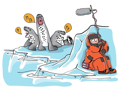 研究者分析了豹海豹5种不同的呼叫:高双颤音、中单颤音、低下降颤音、低双颤音,及带有低单颤音的呼啸声,认为这些声音更类似儿歌。