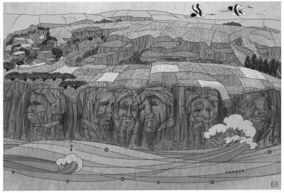 七、积水退去 看不到边的大平川 硬让八戒耧成了横七竖八的沟沟壑壑 “这可咋了得” 哥俩儿求天赎罪过 人往高处走,住进沟坎崖畔生出的土窑洞里边 黄土塬总得长眼窝 水往低处流,积水最终汇成黄河 天天念诵着黄土高原和黄河的传说 |