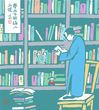 【画语】学而不厌,诲人不倦——在校读书时,老师常用此句勉励我们。读书学习其实并不枯燥,关键是要深入其中,怡然自得。书如果真正读得透彻,还会感悟出不少人生滋味和哲理。诲人不倦这个词,不觉让我想起和孩子一起放风筝的一幕。儿子7岁时,不太懂得风的原理,只是一味地拉着风筝到处跑,结果累得满头大汗,也不见风筝上天。这时,不厌其烦地给他讲解就是我的使命。不久,风筝终于飞了起来,儿子很开心,我的心情也非常愉悦。