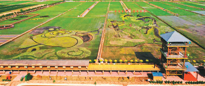 一系列景致中,最令人称道的,要数观景塔下方由白、浅绿、深绿、红、紫等七色稻苗勾勒出的稻田画。“上次来是齐天大圣孙悟空,这次是哪吒闹海,都是经典动画形象,不仅拍照好美,孩子看了也高兴。”走上观景台,正在合影留念的游客王蓓告诉记者,全家人已经是第二次来这里游玩了,在“稻渔空间”,小朋友可以下水抓鱼,跟鸭子亲密接触,大人可以烧烤野餐,享受原生态美食,回家的时候,每人30元的门票还赠送2斤有机大米,值当。听着游客们赞不绝口,赵建文也笑得合不拢嘴,“除了这些,我们还有水稻认养、农田学校呢!”