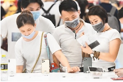 海关总署近日发布数据,7月1日至7日海南离岛免税新政实施第一周内,离岛旅客累计购物4.5亿元,免税6571万元,日均免税939万元,比上半年日均增长58.2%。图为7月12日,游客在海口日月广场免税店选购电子产品。