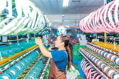 图三:8月28日,浙江省湖州市南浔区菱湖镇,工人们加紧赶制一批发往“一带一路”沿线国家的精品真丝。 |
