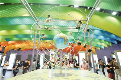 图一:9月6日,观众在服贸会综合区观看北斗导航系统。 |