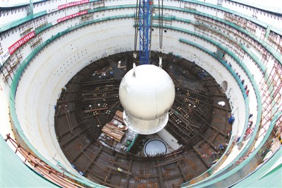 2016年4月22日,“华龙一号”全球首堆中核集团福清5号机组核岛三台安注箱吊装完成。 |