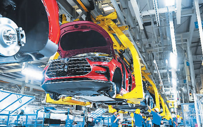 2020年9月23日,在深圳比亚迪总部,工人进行新能源汽车的组装。 |