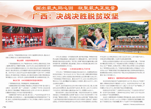 近年来,广西坚持把脱贫攻坚工作作为重要责任和任务,整合各方资源,汇聚强大合力,脱贫攻坚成效显著。
