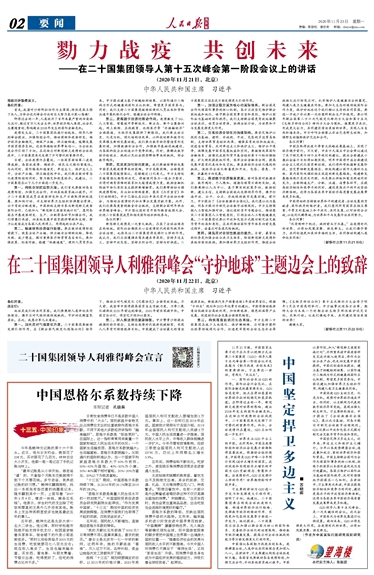 在二十国集团领导人利雅得峰会“守护地球”主题边会上的致辞