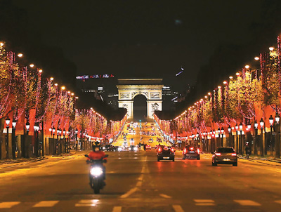11月22日,法国巴黎著名的香榭丽舍大街迎来一年一度的点灯仪式。鉴于新冠肺炎疫情及法国当下的“封城”措施,当天的点灯仪式没有观众参加,人们可以通过网络和社交媒体在线观看全过程。从2020年11月22日起至2021年1月6日,整条香榭丽舍大街在17时至次日2时都将被喜庆的节日灯饰点亮,12月24日和12月31日通宵不灭。