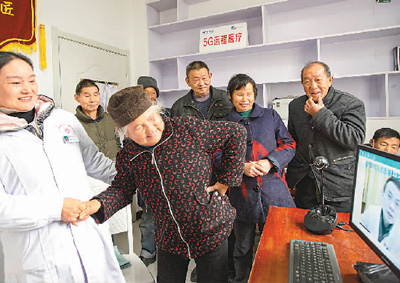 近日,安徽省六安市人民医院组织专家为金寨县花石乡大湾村开展5G远程医疗会诊,在村医的协助下,10余名患者在网络上与专家面对面,获得专家提供的治疗方案。