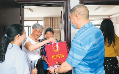 5月10日是浙江省丽水市景宁畲族自治县鹤溪街道金园丽景小区业委会换届选举日,图为小区业主为心仪的业委会成员投票。 |