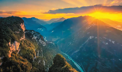 巴山大峡谷位于四川省宣汉县境内,绵延数千公里的秦巴山脉在这里呈现出道道折痕,雨水经年累月地冲刷形成条条泪痕般的沟壑,在两面大山的夹击下,汇聚成一条巨大的深沟峡谷。
