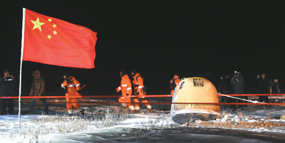 12月17日凌晨,嫦娥五号返回器携带月球样品,采用半弹道跳跃方式再入返回,在内蒙古四子王旗预定区域安全着陆。 |
