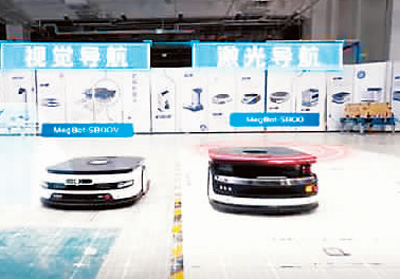 由旷视科技研发的智慧物流机器人。 |