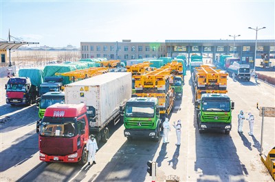 内蒙古二连浩特口岸是中国对蒙开放的最大陆路口岸,是对蒙、俄经贸合作的主要通道和重要平台,为企业复工复产和推动稳外贸、稳外资,保产业链供应链稳定起到了积极促进作用。图为日前二连出入境边防检查站的通关车辆。 |