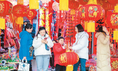 随着牛年春节临近,江西庐山市火红的灯笼、金黄的福字挂满市场。当地政府在抓好常态化疫情防控的同时,积级组织货源,营造出欢乐祥和的节日氛围。图为1月30日,市民们在采购年货。