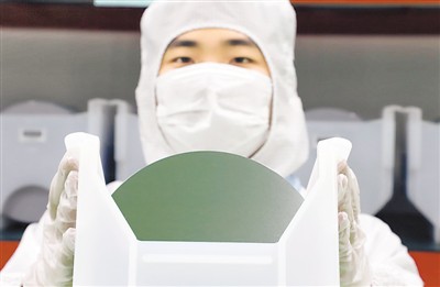 图二:1月18日,辽宁锦州神工半导体股份有限公司生产的8英寸半导体硅抛光片产品正式下线,标志着该公司半导体大硅片生产布局进入新的阶段,向“半导体材料国产化”目标迈进了坚实的一步。图为一名工作人员正在展示产品。 |