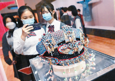 学生拍摄制作精美的清代宫廷头饰。