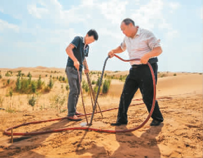 在内蒙古鄂尔多斯市杭锦旗,群众在给沙柳浇水。 |
