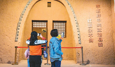 5月3日,游客在宁夏盐池县革命烈士纪念园内的革命纪念馆参观。 |