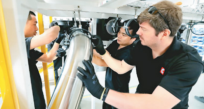 图为德企商先创热处理设备(昆山)有限公司的中德技术员在车间组装真空泵柜。2021年1—4月,江苏省利用外资结构优化、增势强劲,外资规模继续保持全国第一。 |