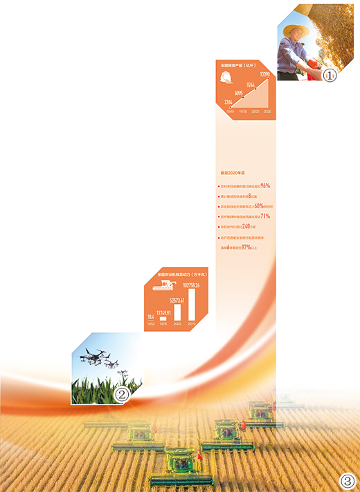 实现藏粮于技。农业生产方式发生革命性变化,全国粮食作物耕种收综合机械化率超过80%,农民面朝黄土背朝天已成历史,我国农业进入主要依靠科技装备驱动的新阶段。