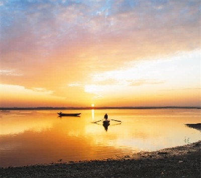 碧波荡漾是西凉湖的本色,春涨秋落是西凉湖的品性。西凉湖是水的世界,荷的海洋,鱼的故乡和鸟的天堂。一岸岸垂柳,站成百尺丝绦深几许的如画屏障;一只只渔舟,摇成往来若风似车马的水乡景象。青青艾蒿在五月里碧草连天,甜甜菱角在九月里映日而红——那水鸟嬉戏、渔歌互答的构图,是动静相宜的匠心独运,让人在叹为观止时,顿作返璞归真之态;那银装素裹、寂野无声的恬然,让人领悟生命的丰富内涵。