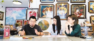应学员们个性化订制的要求,金丝珐琅画的题材也不再局限于传统,而是涵盖了形形色色符合现代审美的图案。在郭巍手把手的指导下,学员们做出了传统的五福捧寿图、憨态可掬的老虎、潇洒逼真的动漫人物……一到周末,小店里就座无虚席,十几名学员共同作画的场面让郭巍累并快乐着。