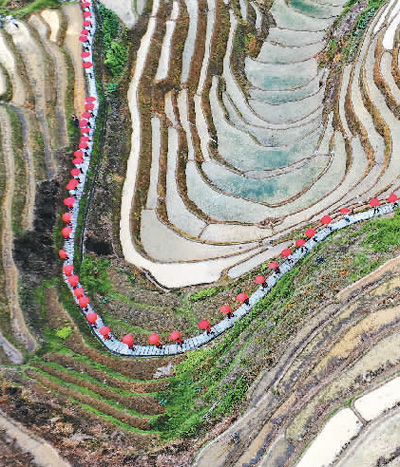 6月13日,龙胜各族自治县迎来一年一度传统节日梳秧节。图为当地民众开展民俗巡游。 |