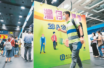 香港特区政府劳工处举办的大型招聘会吸引不少年轻人前来求职。 |