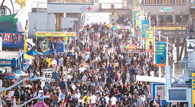 4月7日,美国加利福尼亚州圣莫尼卡的海滨游人众多。美国公共卫生专家曾表示担忧,美国春假期间许多民众外出旅游、与亲友聚会,一旦放松对病毒的警惕及相关防控措施,可能导致疫情反弹。 |