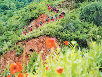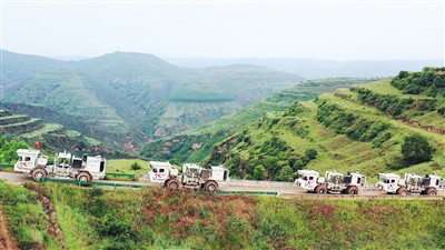 目前,长庆物探处287队正在甘肃省庆阳市合水县运作国内最大的单体页岩油三维地震勘探项目。项目人数最多时达到3635人,在2159平方公里范围内,用自主研发eSeis节点仪器6万多道、可控震源14套、运输设备406台,完成104678个点的人工地震波激发和34万个点的震波接收。这个项目涉及的植被茂密区占到工区的一半左右。物探人在施工作业中深知黄土高原绿化不易,始终将保护环境作为工作环节的重中之重。