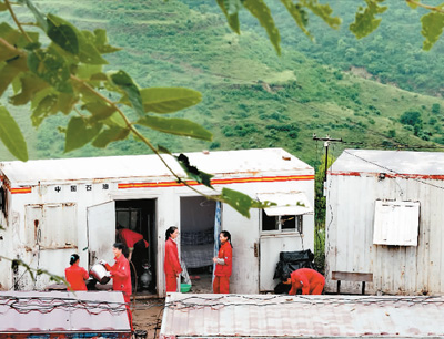 一支勘探小队行走在土林泥泞的路上,去往指定工作地点。 |