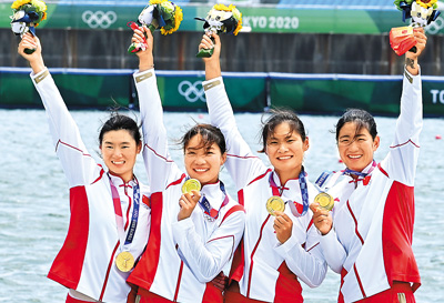 赛艇比赛中,陈云霞、张灵、吕扬、崔晓桐夺得女子四人双桨金牌,并以6分05秒13刷新了该项目世界最好成绩,这是中国赛艇历史上的第二枚奥运会金牌。