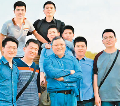 黄大年(前排中)与学生在一起。 |