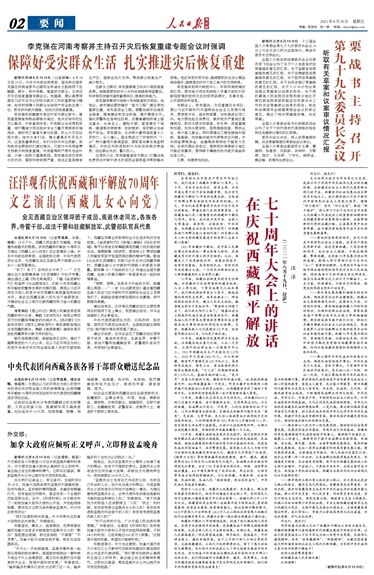 汪洋观看庆祝西藏和平解放70周年文艺演出《西藏儿女心向党》