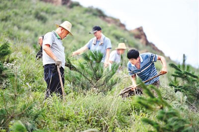 图一:7月23日,造林人员在河北省滦州市鸡冠山生态农业产业园一座荒山上栽植苗木。 |