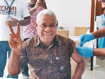 图为7月13日,在巴布亚新几内亚首都莫尔兹比港,一名男子接种中国疫苗。 |