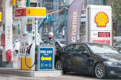 图为十月十六日,在加拿大多伦多的一处加油站,一名男子为汽车加油。当日,大多伦多地区汽油价格创下新高,最低标号的八十七号汽油价格升至每升一点四六九加元。 |