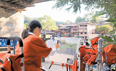 湖南通道侗族自治县充分挖掘资源优势,着力打造研学游、民俗游、红色游、生态游等特色旅游品牌。图为美术生在当地写生,潜心创作。 |