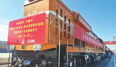 本报电 近日,在青岛胶州海关办结通关监管验放手续后,中欧班列(齐鲁号)“铁路快通”专列自上合示范区青岛多式联运中心发出。