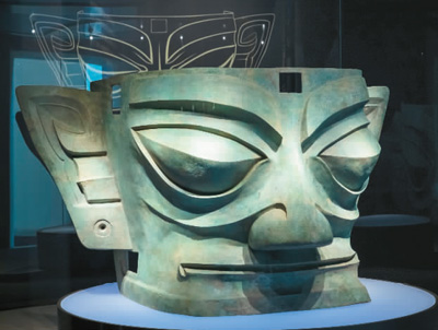 1986年出土于三星堆2号“祭祀坑”的青铜面具。该面具高72厘米,宽132厘米,是目前三星堆遗址出土所有面具中体量最大的一件。 |