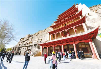 游客在甘肃敦煌莫高窟景区观光游览。 |